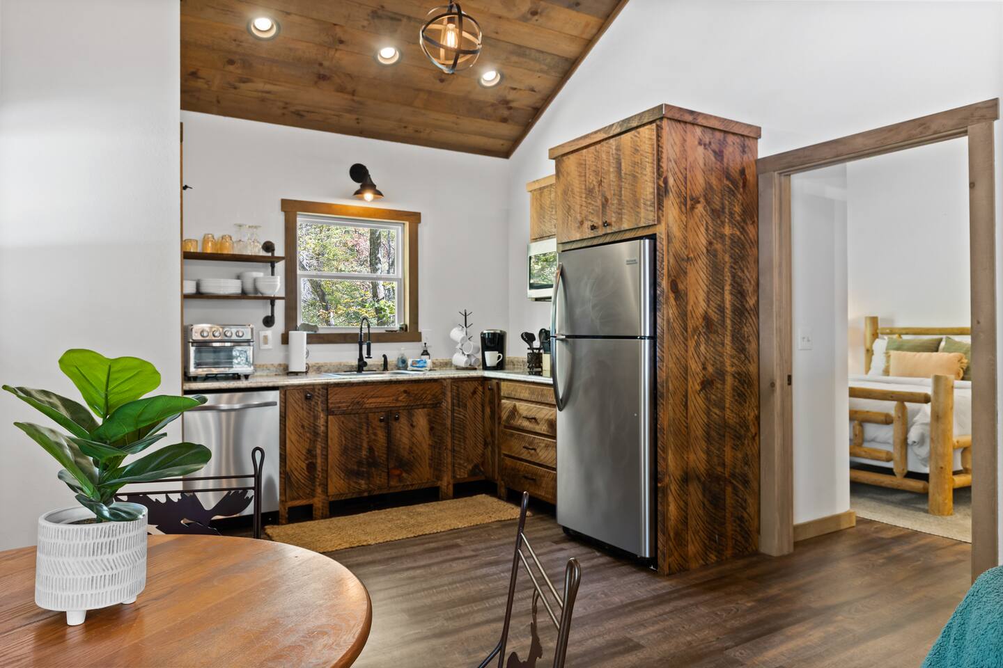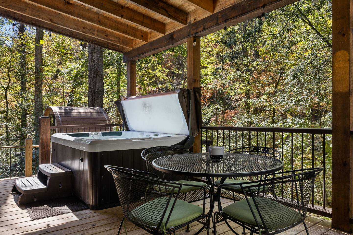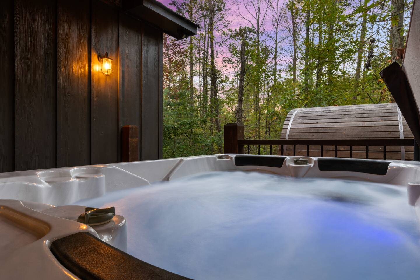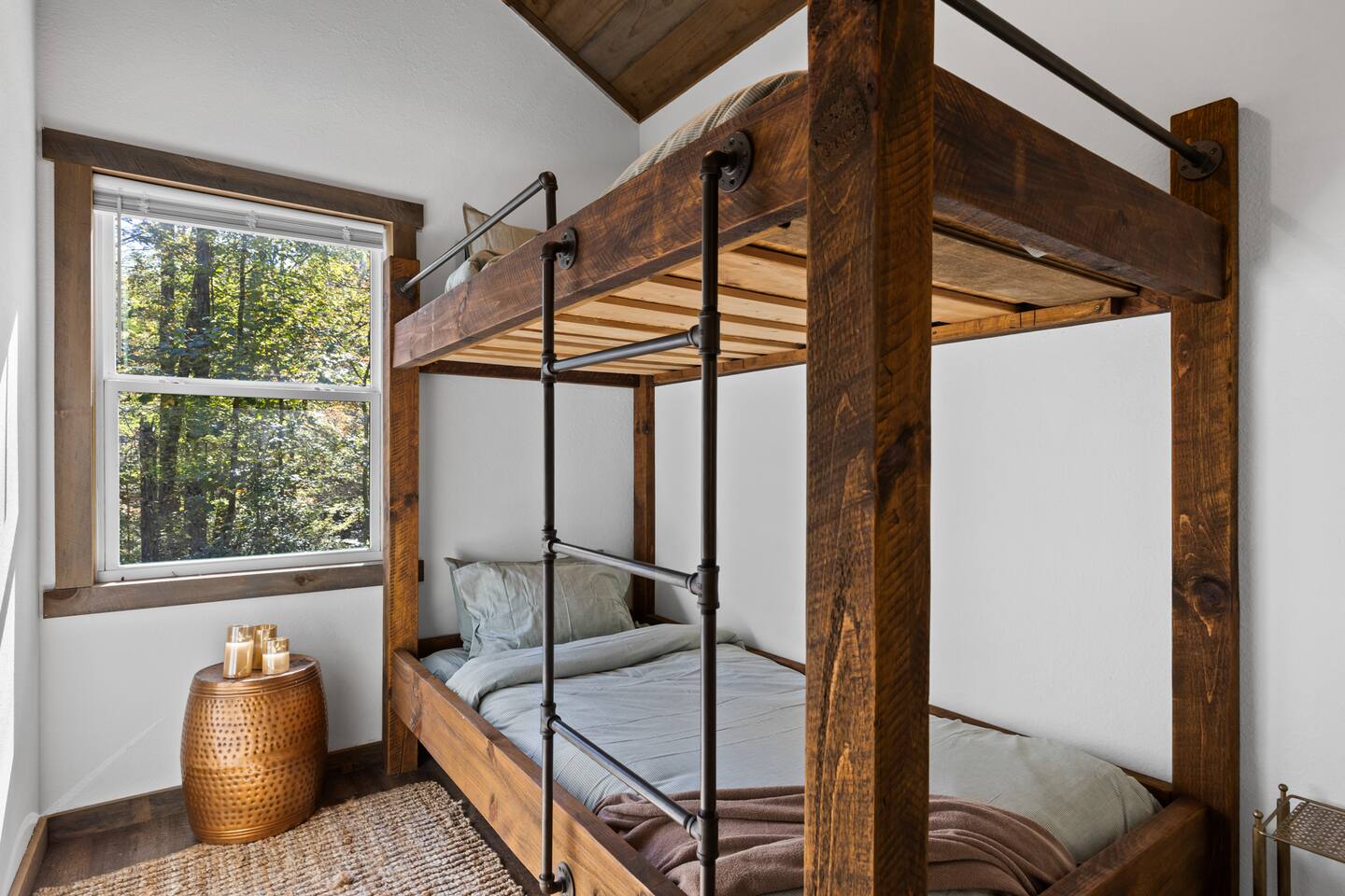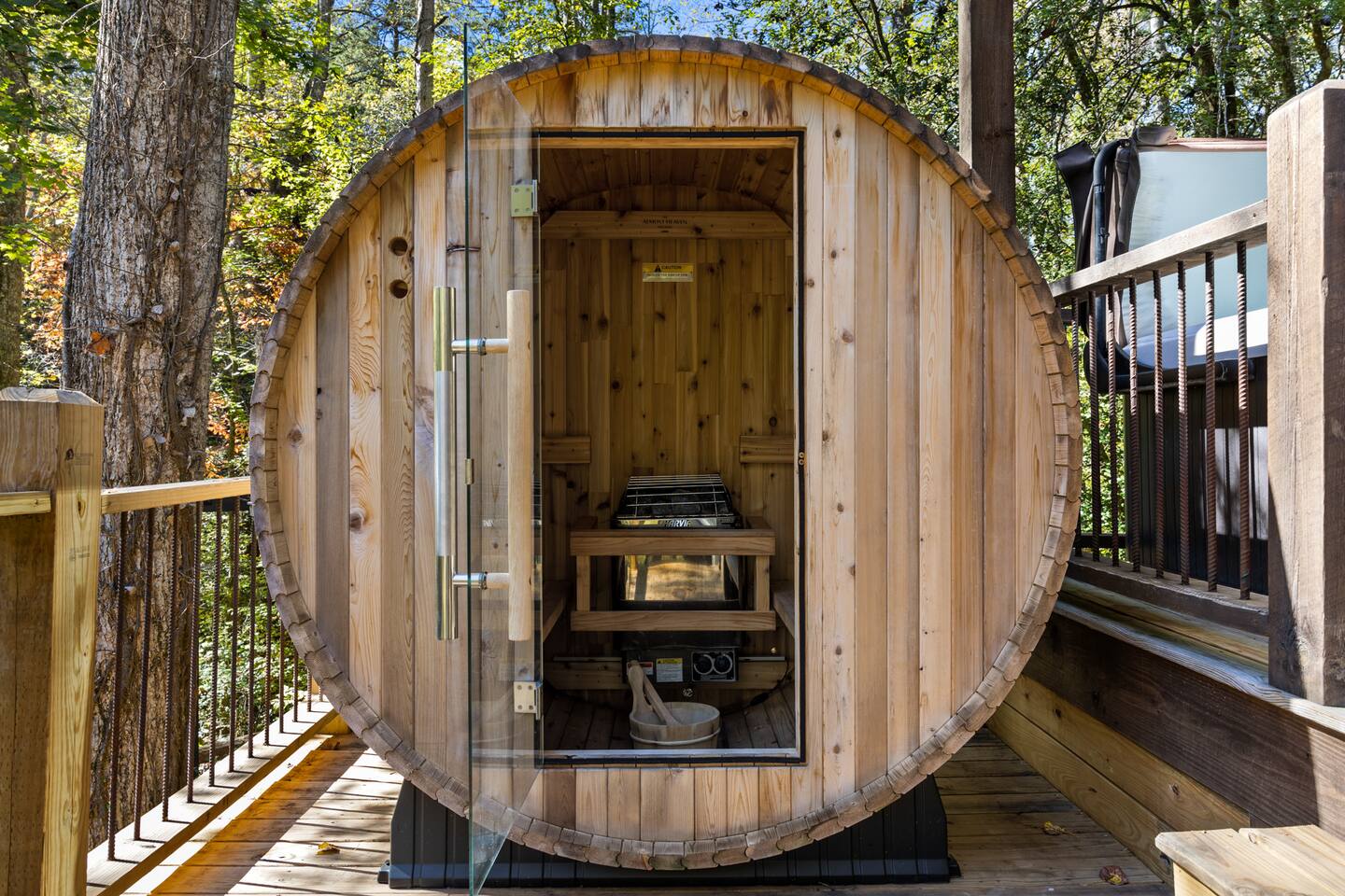 Highlights: 🍬 Barrel sauna for a soothing spa-like experience 💦 Private hot tub perfect for unwinding under the stars 🔥 Fire pit for s’mores and storytelling 🌳 Surrounded by nature, yet close to shops & dining Sleeping Arrangements: Bedroom 1: Queen bed, closet storage Bedroom 2: Two twin-over-twin bunk beds Living Spaces: Open living room with indoor fireplace & smart TV Fully equipped kitchen with cooking basics Dedicated workspace & fast Wi-Fi Outdoor Living: Hot tub & sauna for year-round relaxation Fire pit & BBQ grill Private wooded setting Local Attractions: Main Street Blue Ridge: shops, dining, breweries Hiking trails, waterfalls, and Lake Blue Ridge Seasonal festivals & scenic drives Your mountain retreat awaits. Book your stay today and experience why guests return year after year!